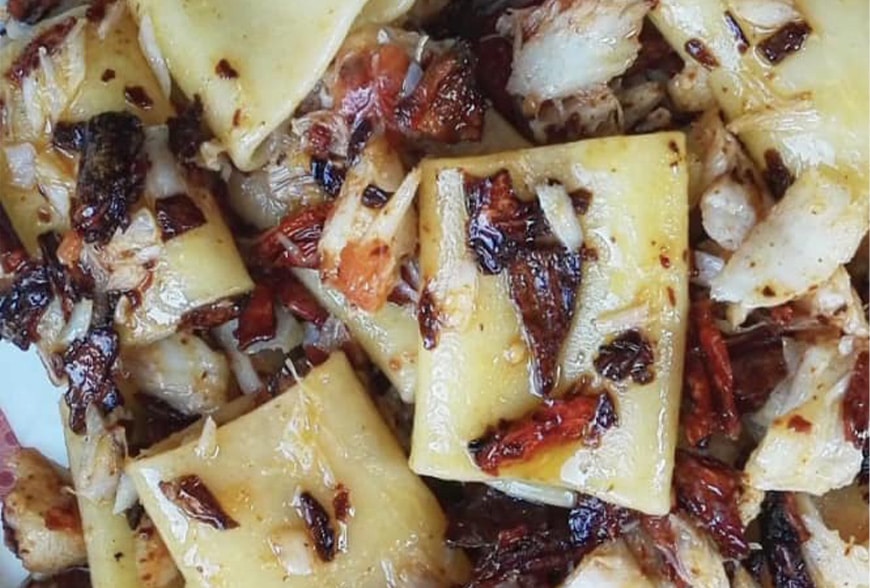 PACCHERI-CON-BACCALÀ-PEPERONI-CRUSCHI-E-MOLLICA-FRITTA