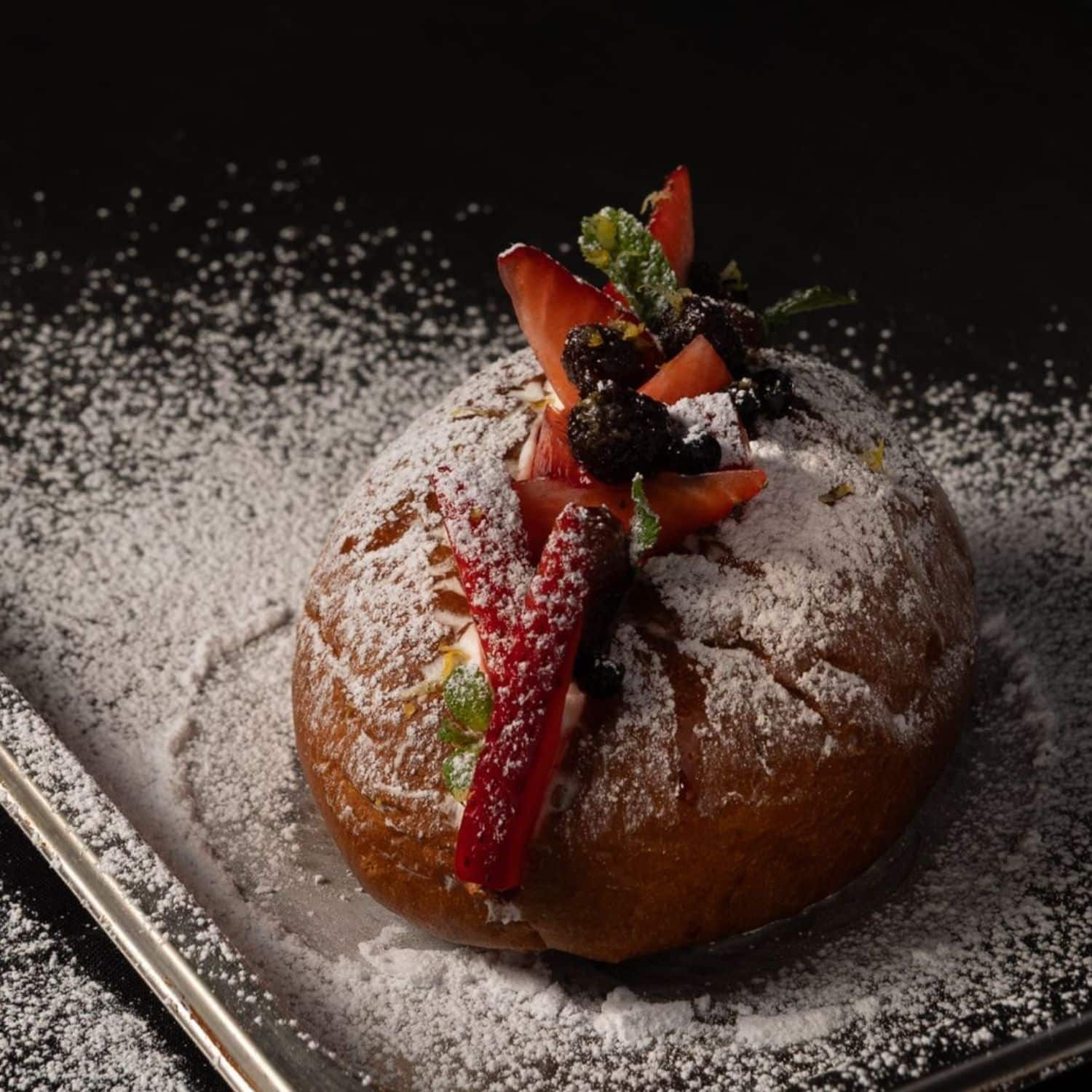 Questa brioche è farcita con un cioccolato Valrhona Extra Bitter 61%, è frutto di un assemblaggio complesso di profili aromatici di cacao tipici di Repubblica Dominicana, Ecuador, Madagascar, Costa d’Avorio e Ghana, note leggermente amare di cacao, vaniglia e cocco.