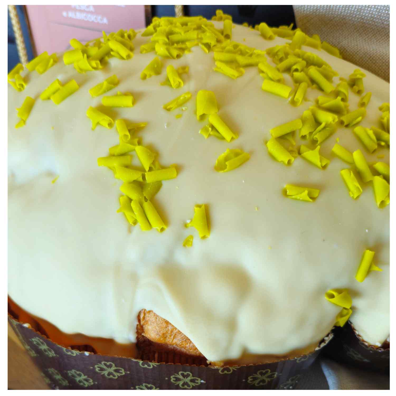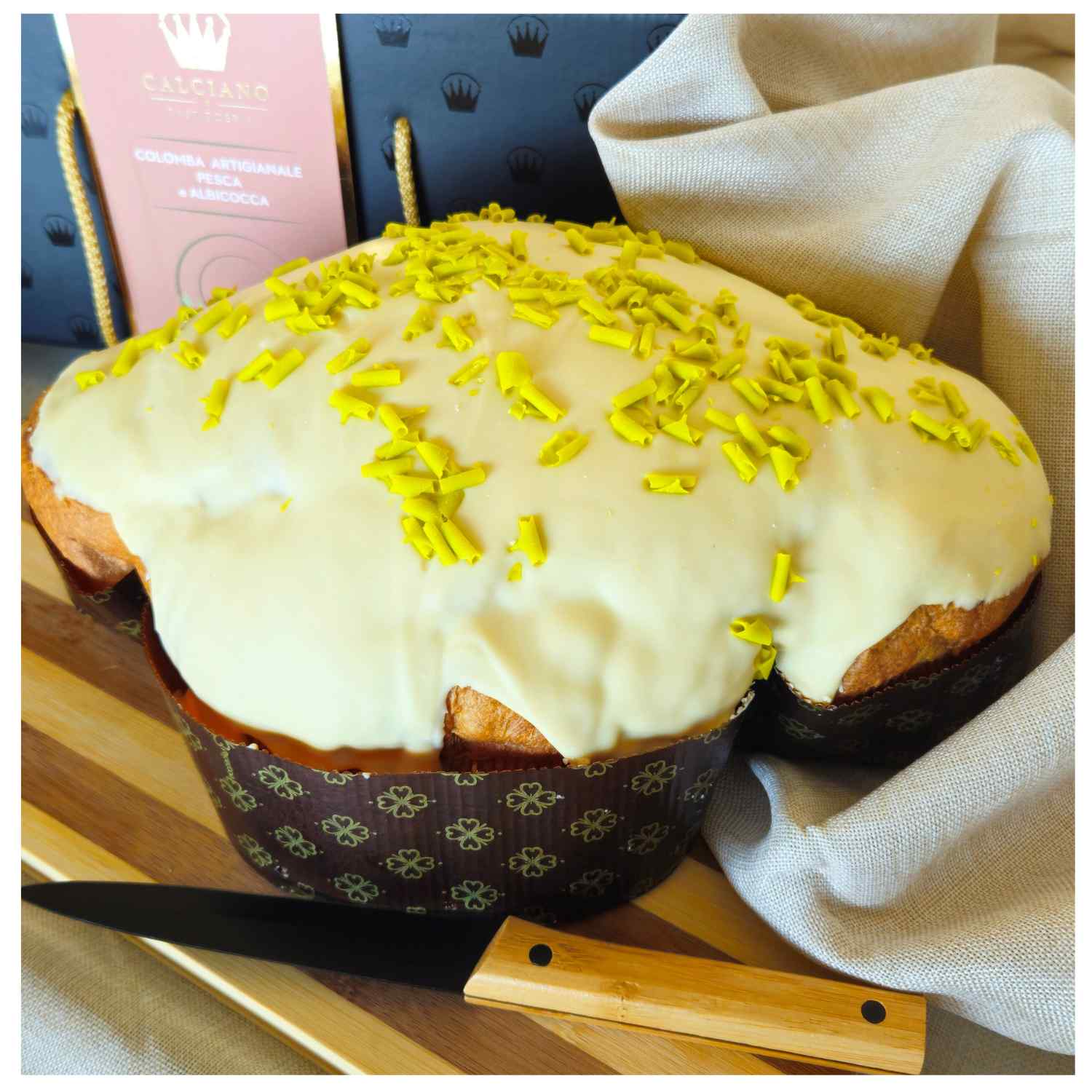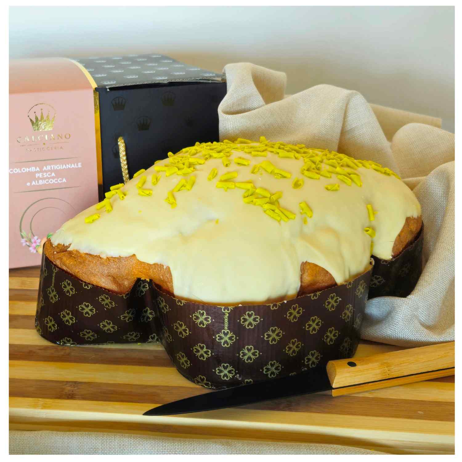 | Ingredienti | farina di frumento tenero macinata a pietra, burro vaccino di Normandia, zucchero, tuorlo d’uova fresche, pesche macerate nel vino “Aglianico del Vulture”, albicocche Varietà Tonda di Costigliole, lievito naturale, miele d’acacia, sale, malto, baccelli di vaniglia del Madagascar. |
