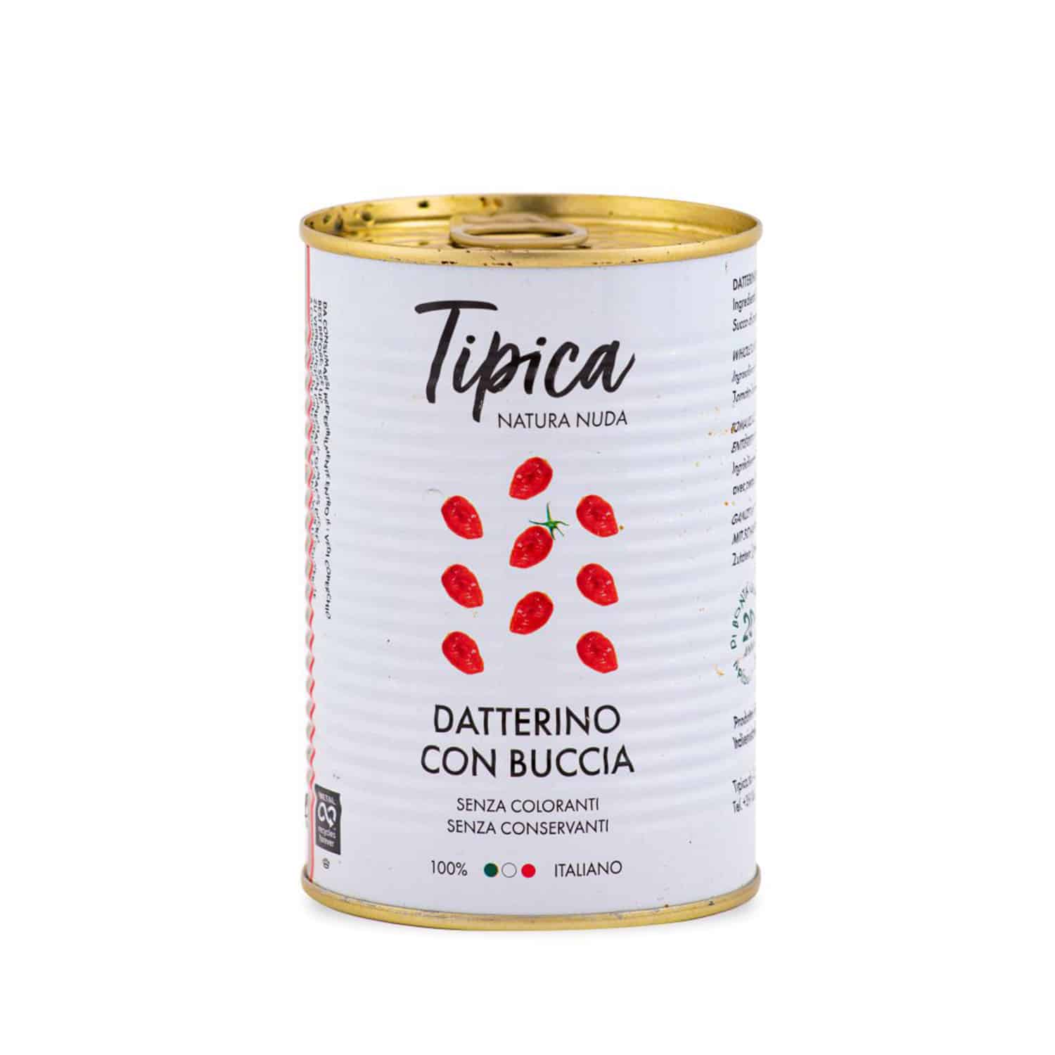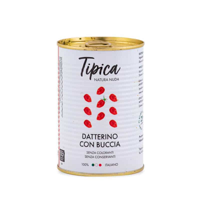 Conserva in latta con datterino di manduria con buccia, dal sapore leggermente piรน acidulo rispetto al classico datterino ma molto piรน intenso e profumato. Ottimo da abbinare con orecchiette e ricotta salata grattuggiata.