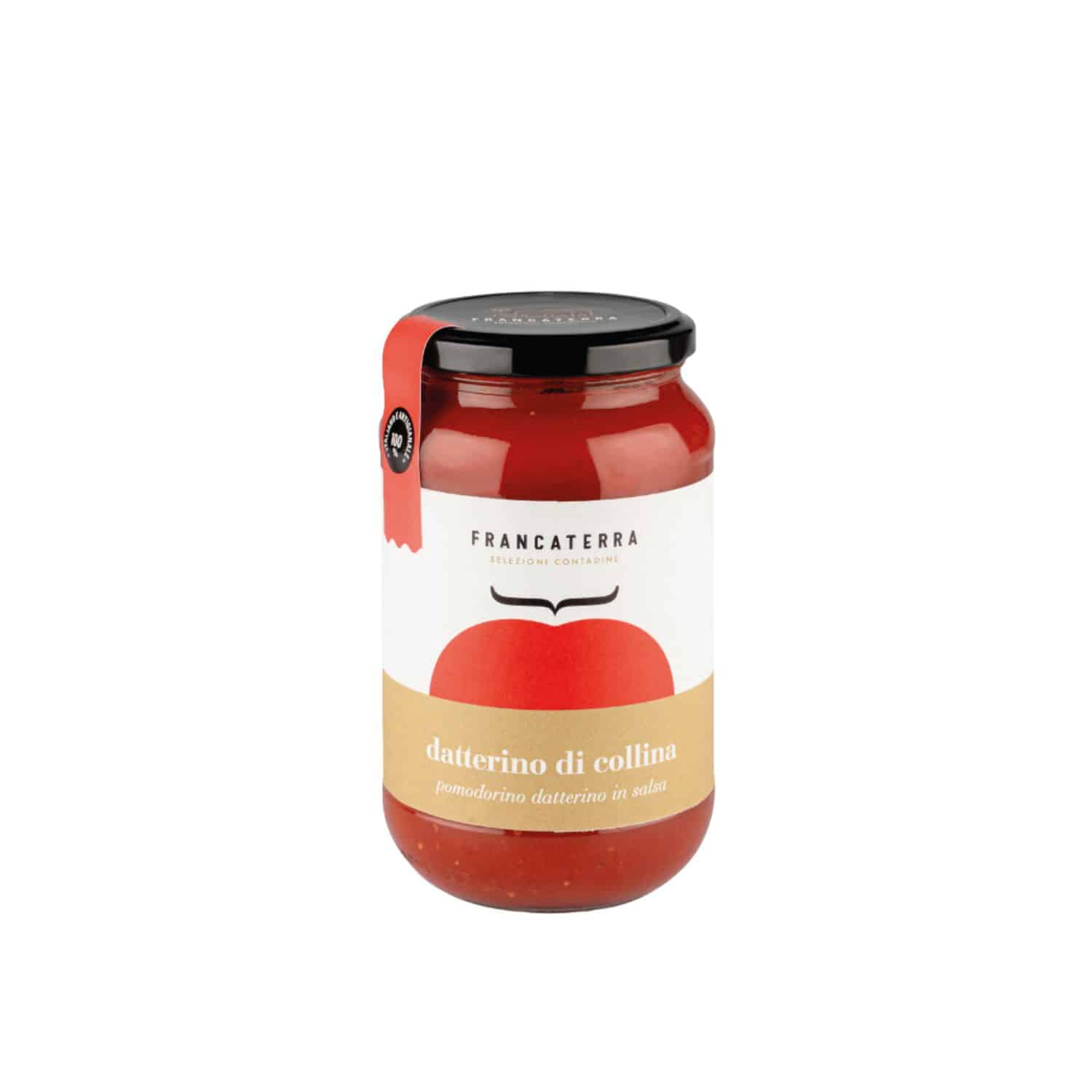 Intenso e aromatico, il pomodorino datterino di collina in salsa รจ unโ€™esplosione di gusto e dolcezza. Raccolti, lavorati e immersi nella loro salsa come la tradizione comanda.