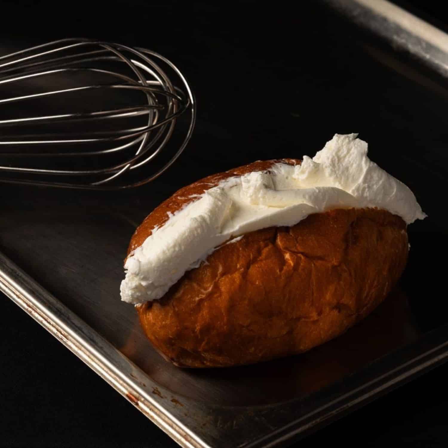 Il nostro maritozzo impastato con farina selezionata, uova, miele, burro, sale e aromi freschi come vaniglia bourbon e zeste di limone e arancia. Consigliamo di tagliarlo in 2 e farcirlo con abbondante panna montata.