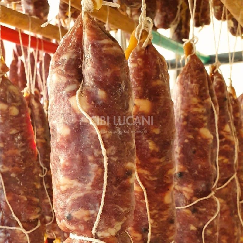 La tradizione insegna ancora oggi che la soppressata รจ realizzata amalgamando la carne con il sale e il pepe nero in grani. Si lascia per alcuni giorni sotto una pietra di marmo appesantita ulteriormente da grosse pietre per conferirle la tipica forma schiacciata. Successivamente si lascia stagionare appesa alle tradizionali pertiche che ancora oggi caratterizzano le cantine lucane.