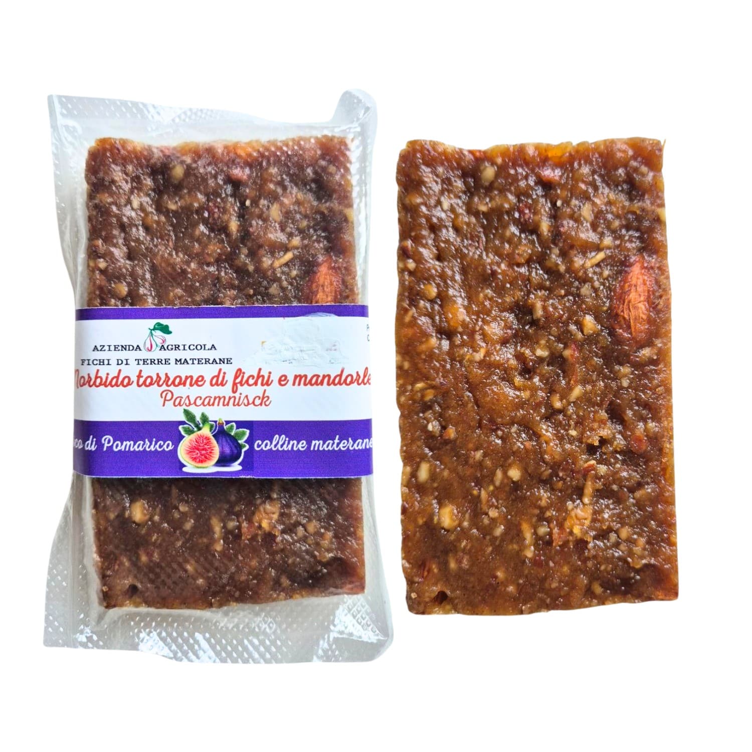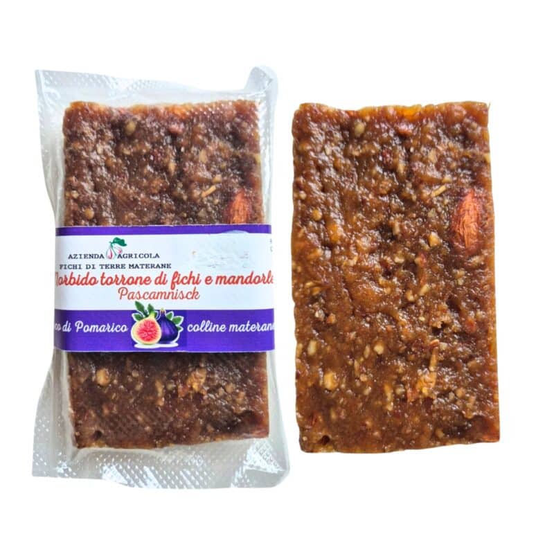 Ingredienti: cotto di fico, mandorle, farina di grano duro, scorze e succo di agrumi, zucchero