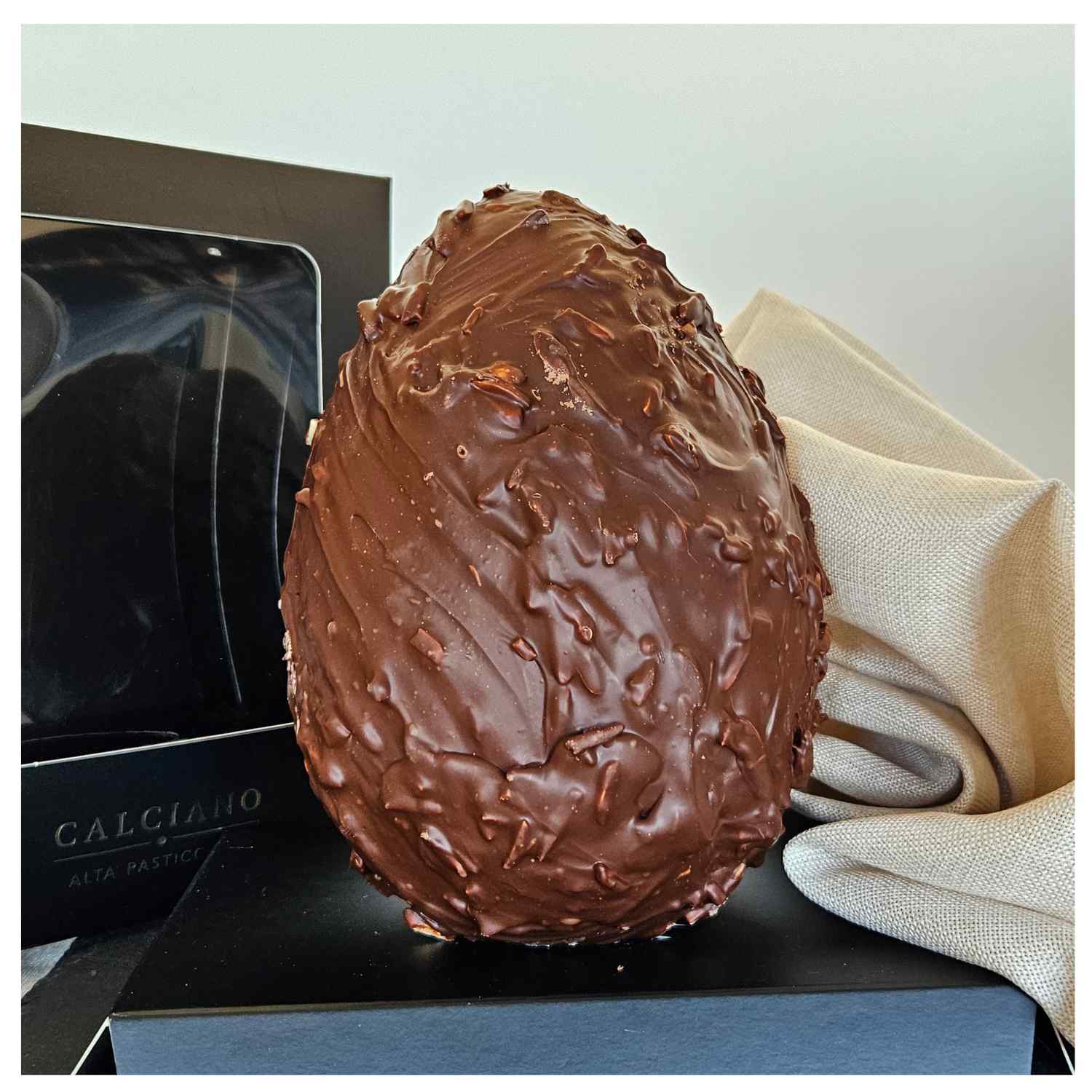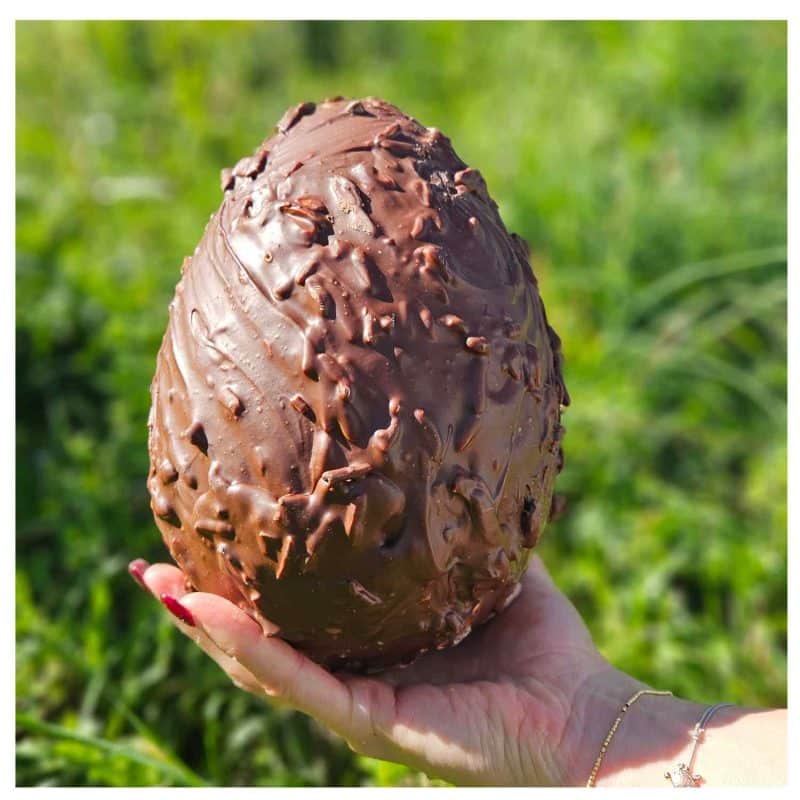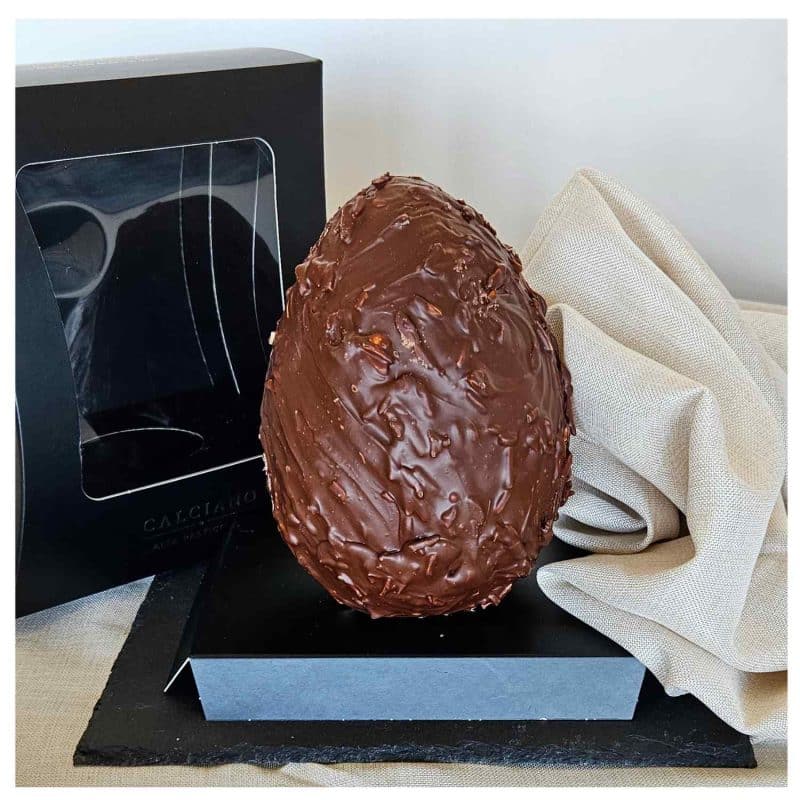 Uovo di pasqua con finissimo cioccolato Al latte senza lattosio con Mandorle della pasticceria Calciano